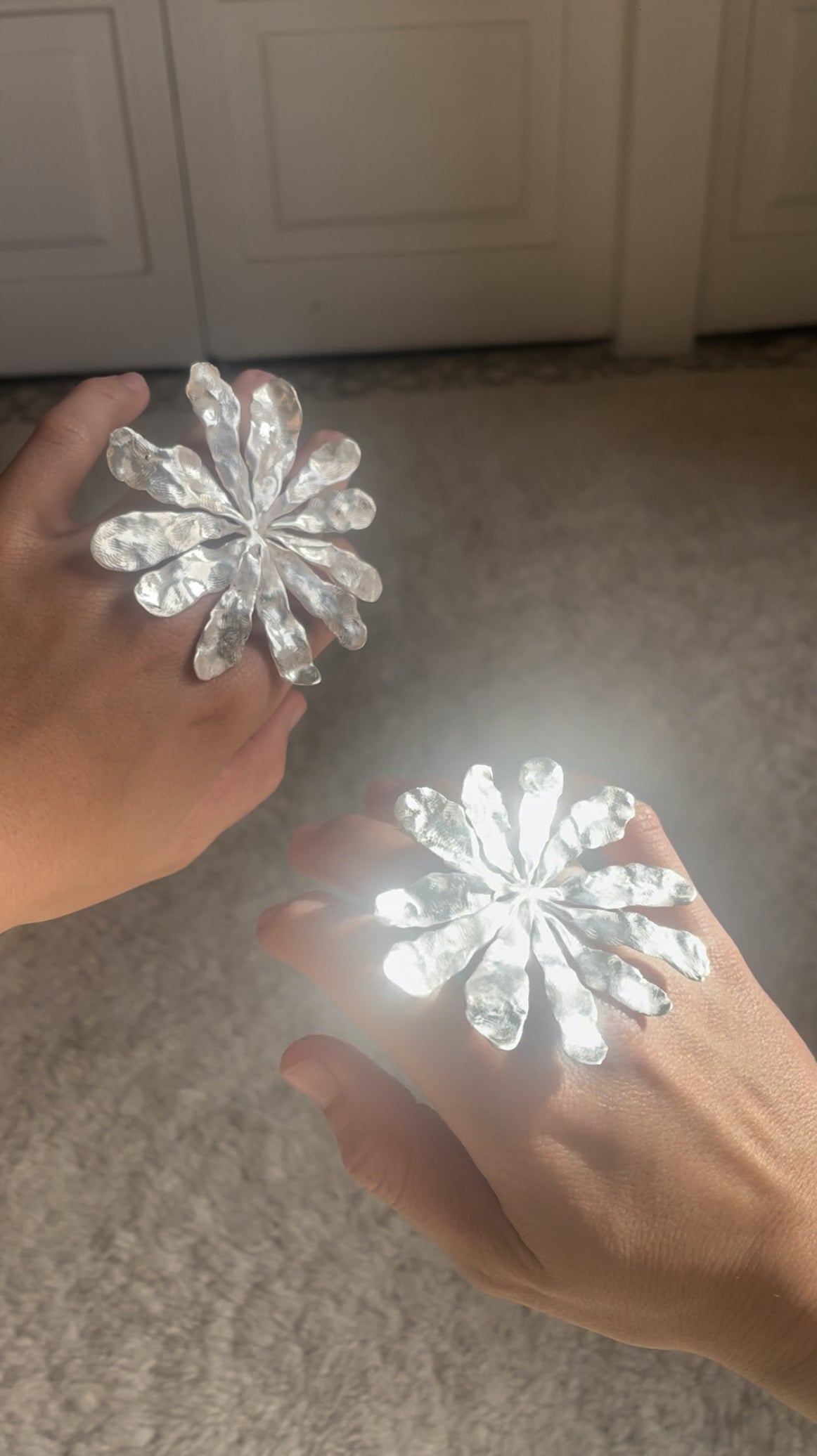 You can adjust the ring to fit your finger, but it’s best to set it to a size you’re happy with and keep it that way. Silver tends to get stiffer the more it’s bent, and over time, it can break if it’s forced too much.